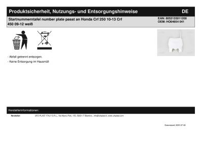 Titel: | Startnummerntafel number plate passt an Honda Crf 250 10-13 Crf 450 09-12 weiß |
