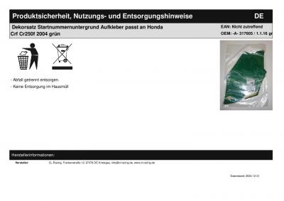 Titel: | Dekorsatz Startnummernuntergrund Aufkleber passt an Honda Crf Cr250f 2004 grün |