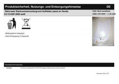 Titel: | Dekorsatz Startnummernuntergrund Aufkleber passt an Honda Crf Cr250f 2008 weiß |