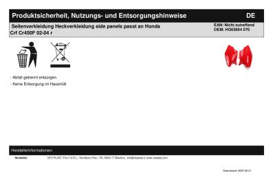 Titel: | Seitenverkleidung Heckverkleidung side panels passt an Honda Crf Cr450F 02-04 r |