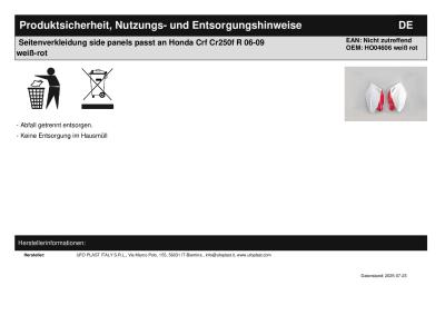Titel: | Seitenverkleidung side panels passt an Honda Crf Cr250f R 06-09 weiß-rot |
