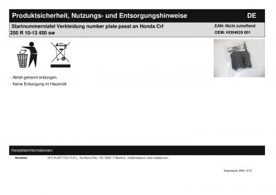 | Titel: | Startnummerntafel Verkleidung number plate passt an Honda Crf 250 R 10-13 450 sw |