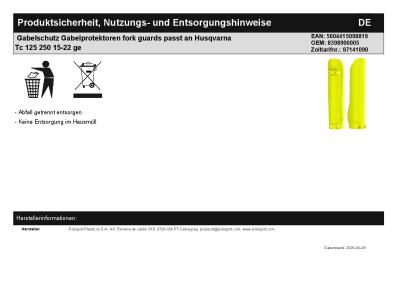 | Titel: | Gabelschutz Gabelprotektoren fork guards passt an Husqvarna Tc 125 250 15-22 ge |