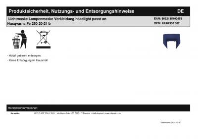 Titel: | Lichtmaske Lampenmaske Verkleidung headlight passt an Husqvarna Fe 250 20-23 b |