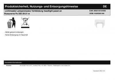 Titel: | Lichtmaske Lampenmaske Verkleidung headlight passt an Husqvarna Fe 250 20-23 w |