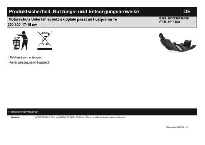 Titel: | Motorschutz Unterfahrschutz skidplate passt an Husqvarna Te 250 300 17-19 sw |