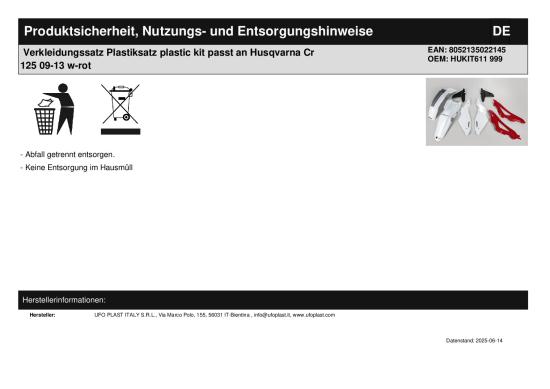 | Titel: | Verkleidungssatz Plastiksatz plastic kit passt an Husqvarna Cr 125 09-13 2. Wahl |