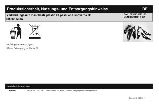 | Titel: | Verkleidungssatz Plastiksatz plastic kit passt an Husqvarna Cr 125 sw 2. Wahl |