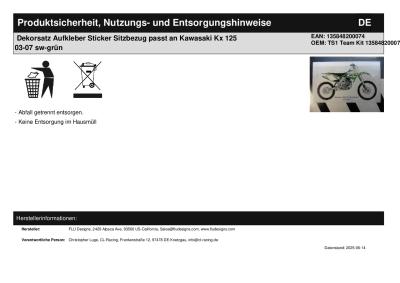 Titel: | Dekorsatz Aufkleber Sticker Sitzbezug passt an Kawasaki Kx 125 03-07 sw-grün |