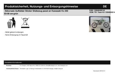 Titel: | Dekorsatz Aufkleber Sticker Sitzbezug passt an Kawasaki Kx 250 03-08 sw-grün |