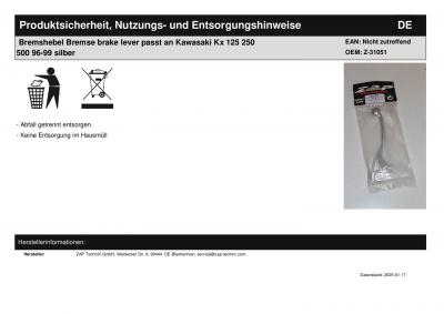 | Titel: | Bremshebel Bremse brake lever passt an Kawasaki Kx 125 250 500 96-99 silber |