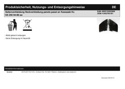 Titel: | Seitenverkleidung Heckverkleidung panels passt an Kawasaki Kx 125 250 94-98 sw |