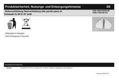 Titel: | Seitenverkleidung Heckverkleidung side panels passt an Kawasaki Kx 80 91-97 weiß |