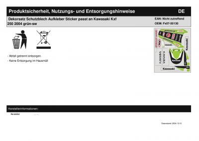 Titel: | Dekorsatz Schutzblech Aufkleber Sticker passt an Kawasaki Kxf 250 2004 grün-sw |