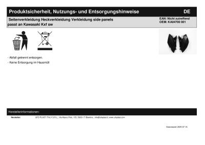 Titel: | Seitenverkleidung Heckverkleidung Verkleidung side panels passt an Kawasaki Kxf sw |