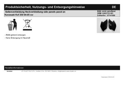 | Titel: | Seitenverkleidung Heckverkleidung side panels passt an Kawasaki Kxf 250 04-05 sw |
