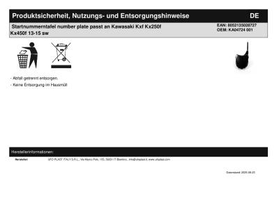 Titel: | Startnummerntafel number plate passt an Kawasaki Kxf Kx250f Kx450f 13-15 sw |