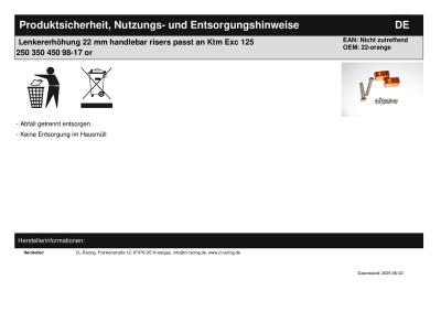 Titel: | Lenkererhöhung 22 mm handlebar risers passt an Ktm Exc 125 250 350 450 98-17 or |