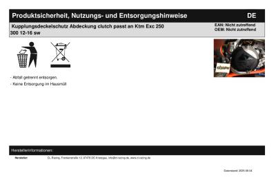 Titel: | Kupplungsdeckelschutz Abdeckung clutch passt an Ktm Exc 250 300 12-16 sw |