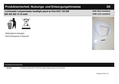 Titel: | Lichtmaske Lampenmaske headlight passt an Ktm EXC 125 200 300 450 500 14-16 weiß |