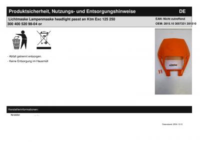 Titel: | Lichtmaske Lampenmaske headlight passt an Ktm Exc 125 250 300 400 520 98-04 or |