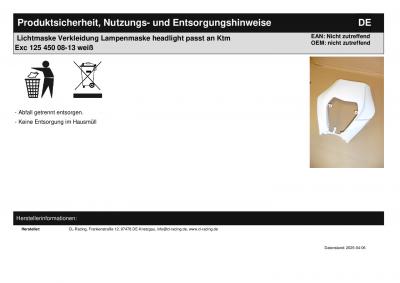 Titel: | Lichtmaske Verkleidung Lampenmaske headlight passt an Ktm Exc 125 450 08-13 weiß |