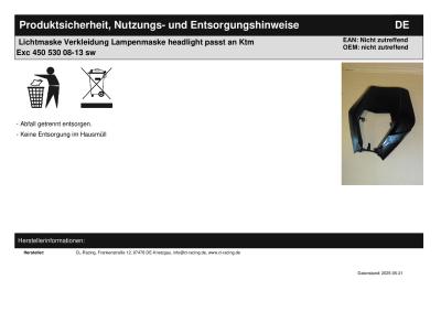 Titel: | Lichtmaske Verkleidung Lampenmaske headlight passt an Ktm Exc 450 530 08-13 sw |