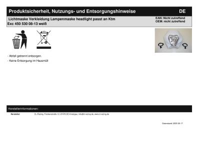 Titel: | Lichtmaske Verkleidung Lampenmaske headlight passt an Ktm Exc 450 530 08-13 weiß |