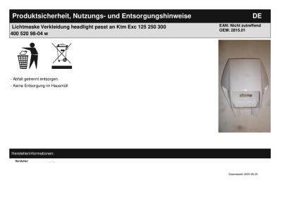 Titel: | Lichtmaske Verkleidung headlight passt an Ktm Exc 125 250 300 400 520 98-04 w |