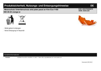 Titel: | Motorschutz Unterfahrschutz skid plate passt an Ktm Exc-f 450 500 20-22 orange-w |