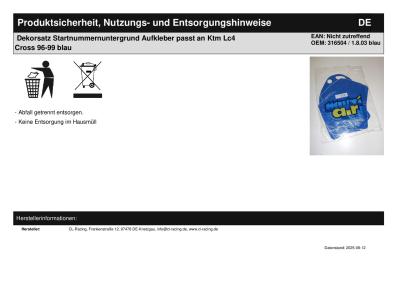 Titel: | Dekorsatz Startnummernuntergrund Aufkleber passt an Ktm Lc4 Cross 96-99 blau |