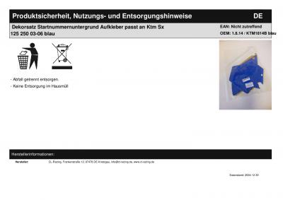 Titel: | Dekorsatz Startnummernuntergrund Aufkleber passt an Ktm Sx 125 250 03-06 blau |
