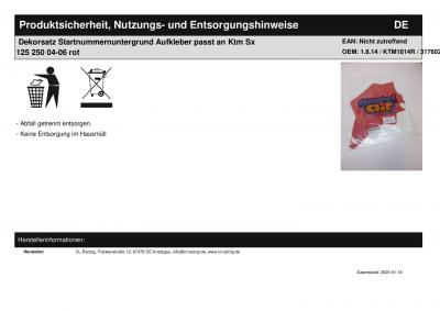 Titel: | Dekorsatz Startnummernuntergrund Aufkleber passt an Ktm Sx 125 250 04-06 rot |