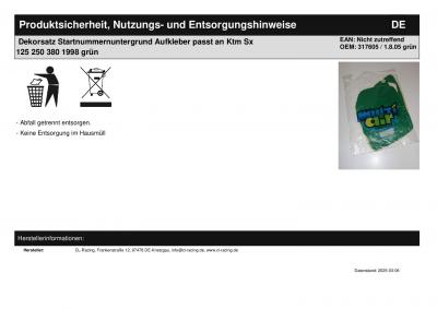 Titel: | Dekorsatz Startnummernuntergrund Aufkleber passt an Ktm Sx 125 250 380 1998 grün |