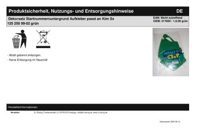 Titel: | Dekorsatz Startnummernuntergrund Aufkleber passt an Ktm Sx 125 250 99-02 grün |