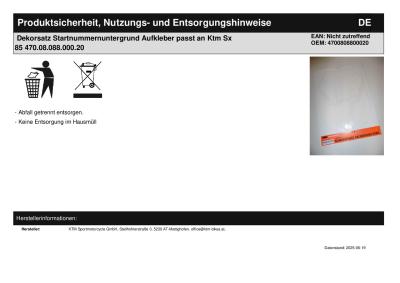 Dekorsatz Startnummernuntergrund Aufkleber passt an Ktm Sx 85 470.08.088.000.20