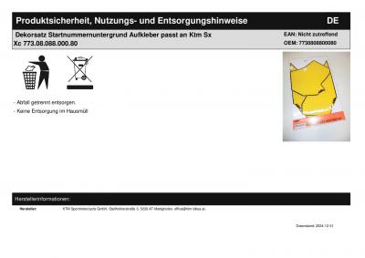 Titel: | Dekorsatz Startnummernuntergrund Aufkleber passt an Ktm Sx Xc 773.08.088.000.80 |