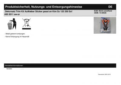 Titel: | Dekorsatz Trim Kit Aufkleber Sticker passt an Ktm Sx 125 250 Sxf 450 2011 sw-or |