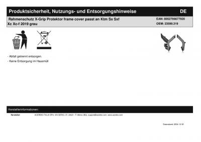 Titel: | Rahmenschutz X-Grip Protektor frame cover passt an Ktm Sx Sxf Xc Xc-f 2019 grau |