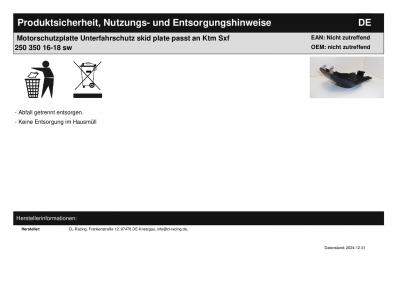 Titel: | Motorschutzplatte Unterfahrschutz skid plate passt an Ktm Sxf 250 350 16-18 sw |