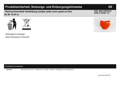 | Titel: | Startnummerntafel number plate cover passt an Ktm Sx 85 18-24 Mc 85 21-24 or |
