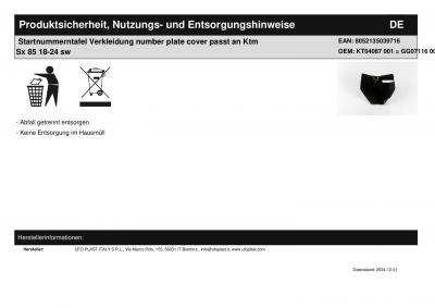 | Titel: | Startnummerntafel number plate cover passt an Ktm Sx 85 18-24 Mc 85 21-24 sw |