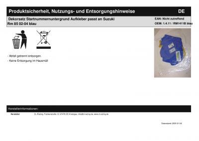 Titel: | Dekorsatz Startnummernuntergrund Aufkleber passt an Suzuki Rm 85 02-04 blau |