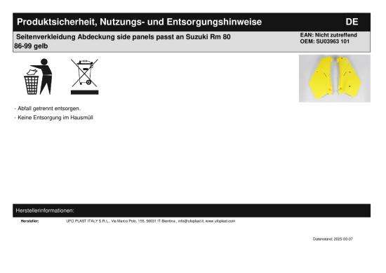 | Titel: | Seitenverkleidung Abdeckung side panels passt an Suzuki Rm 80 86-99 gelb 2. Wahl |