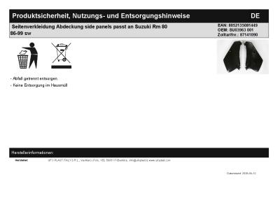 | Titel: | Seitenverkleidung Abdeckung side panels passt an Suzuki Rm 80 86-99 sw |