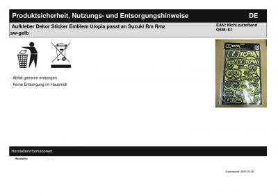Titel: | Aufkleber Dekor Sticker Emblem Utopia passt an Suzuki Rm Rmz sw-gelb |