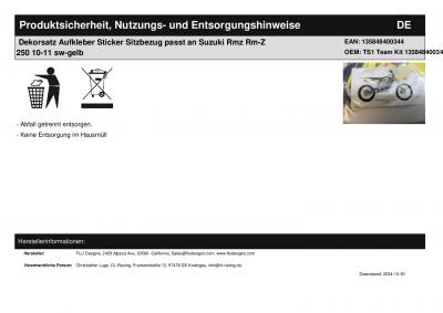 Titel: | Dekorsatz Aufkleber Sticker Sitzbezug passt an Suzuki Rmz Rm-Z 250 10-11 sw-gelb |