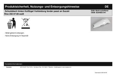 Titel: | Schutzblech hinten Kotflügel Verkleidung fender passt an Suzuki Rmz 250 07-09 weiß |
