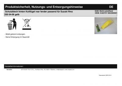 Titel: | Schutzblech hinten Kotflügel rear fender passt an Suzuki Rm-z Rmz 250 04-06 gelb |