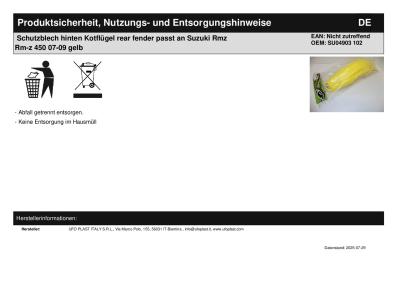 Titel: | Schutzblech hinten Kotflügel rear fender passt an Suzuki Rmz Rm-z 450 07-09 gelb |